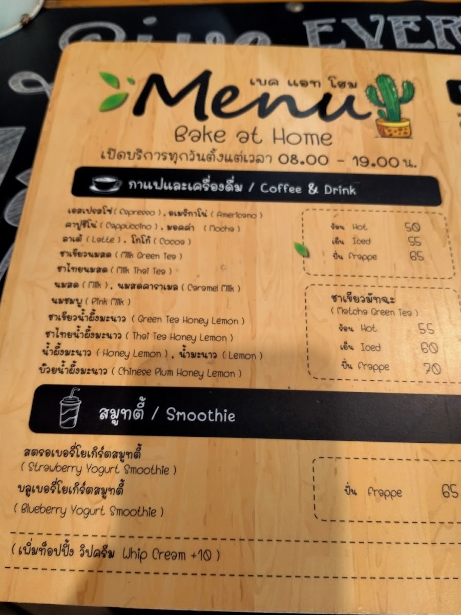 Bake at Home Cafe - เบคแอทโฮมคาเฟ่ Menu